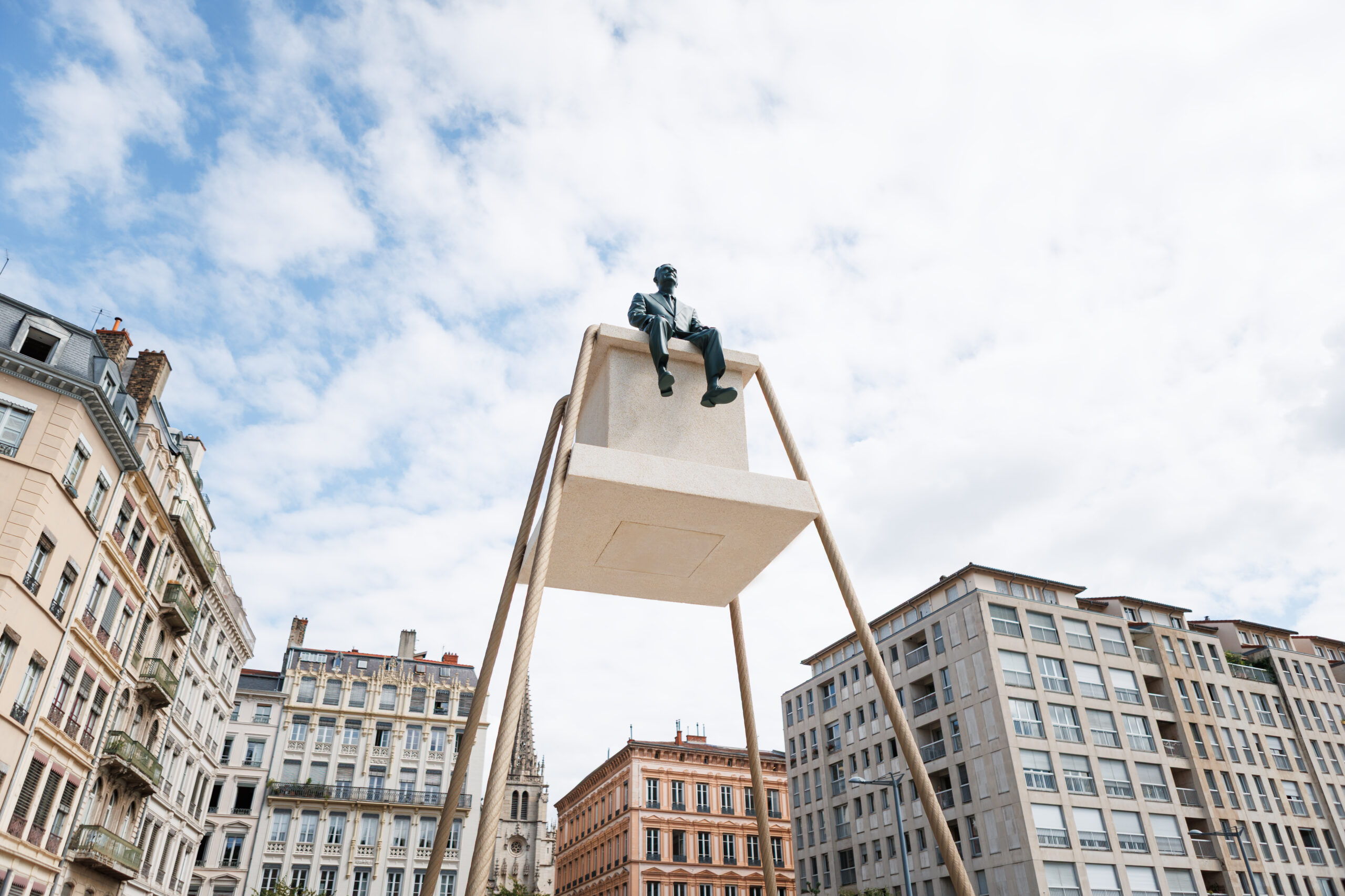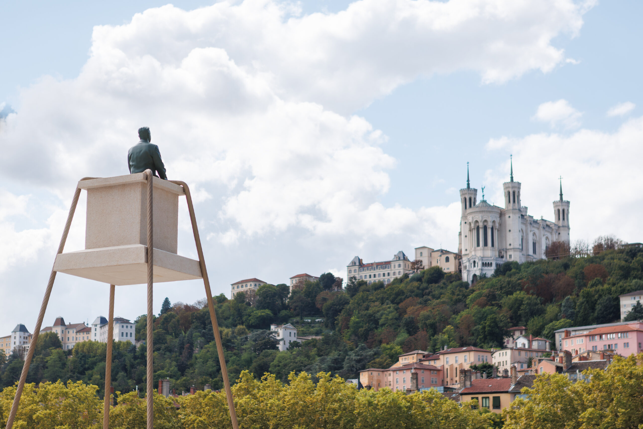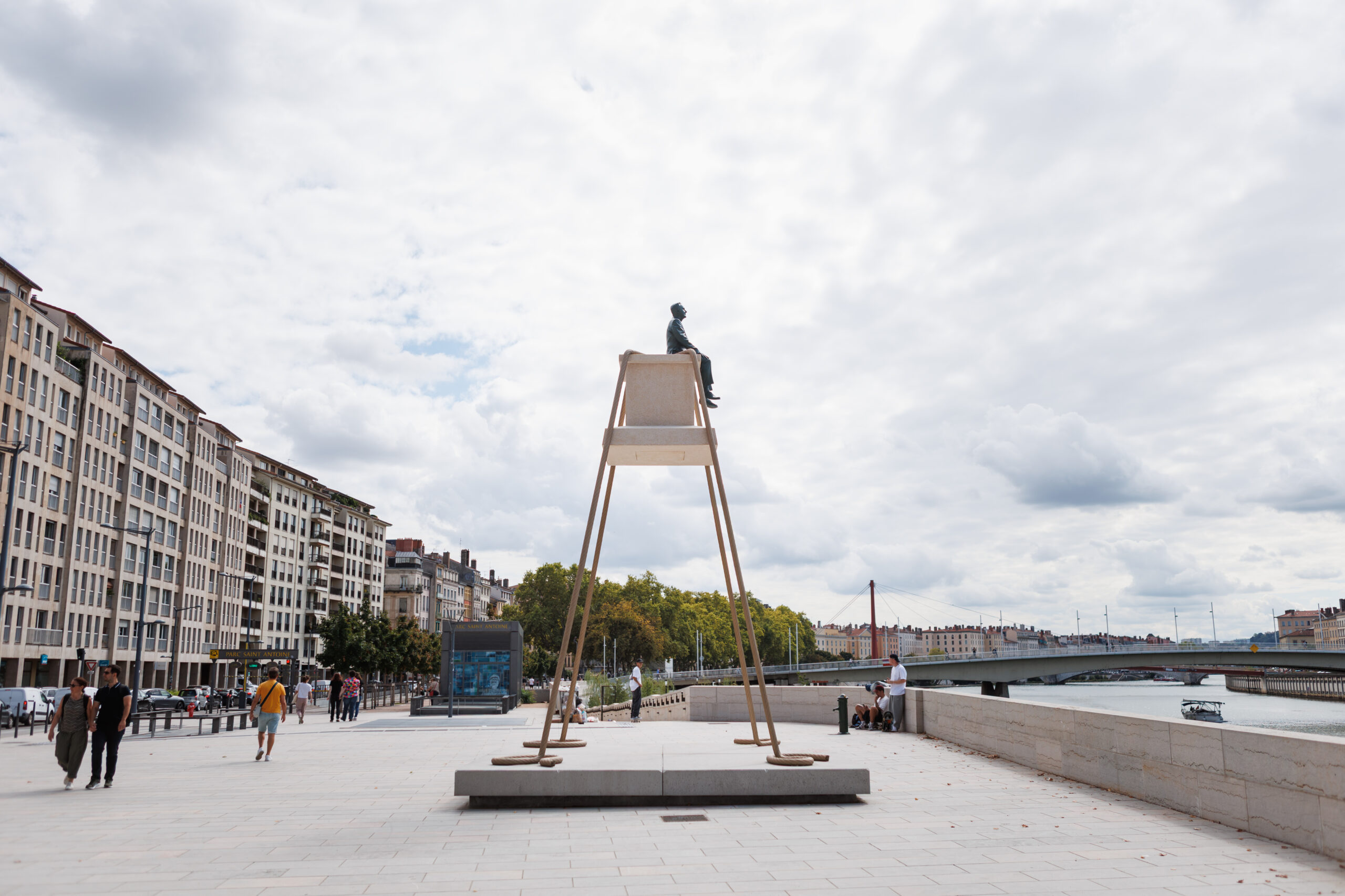 Philippe Ramette installs his work “Éloge de la contemplation” on the belvedere of the future Presqu’île terraces, on the quays of the Saône in Lyon.