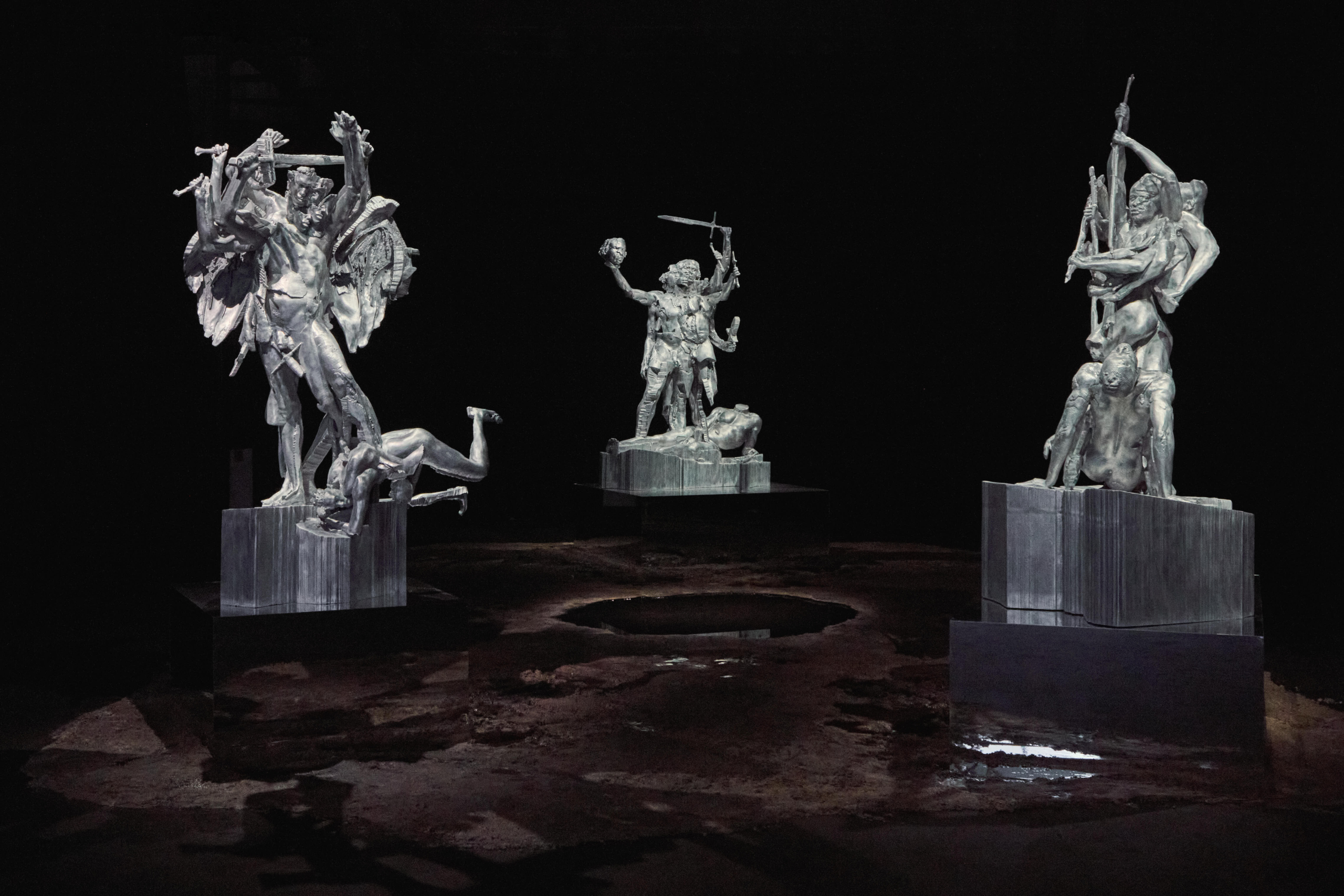 L’artiste dévoile également un second travail in situ intitulé “Nouvelles images du Ciel” sur la verrière de l’espace. Miles Greenberg présente de nouvelles sculptures monumentales en fonte d’aluminium ainsi qu’une performance inédite interprétée par la chanteuse Yseult dans son exposition co-présentée par L’Alliance New-York “Gods of Solaris”.
