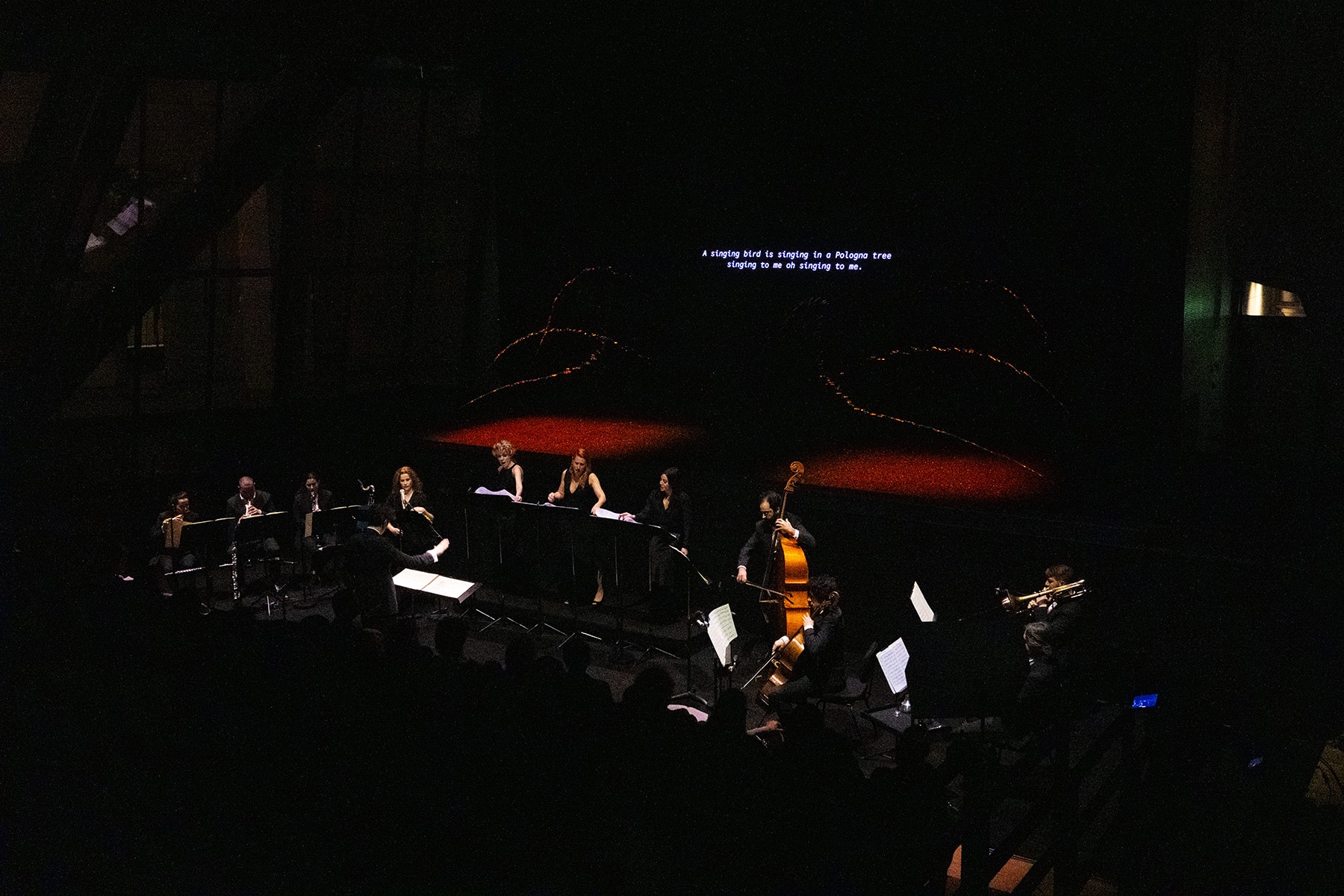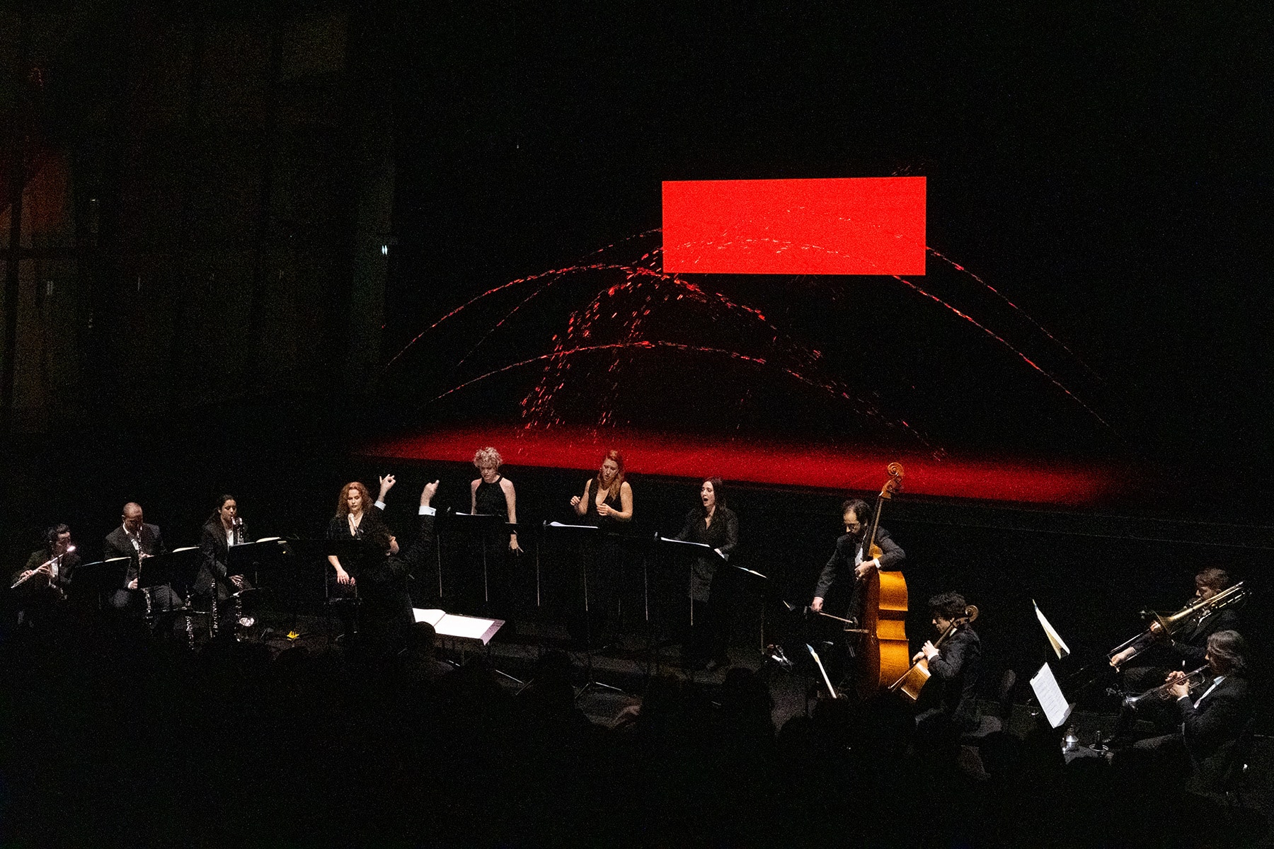 L’opéra a réuni les voix d’Elise Chauvin, Jenny Daviet et Norma Nahon, avec Florence Darel en récitante, sous la direction de Maxime Pascal à la tête de l’ensemble Le Balcon.